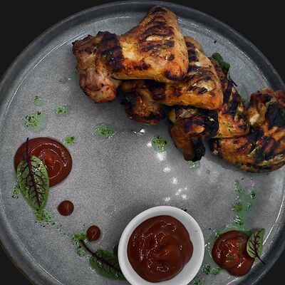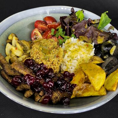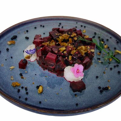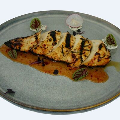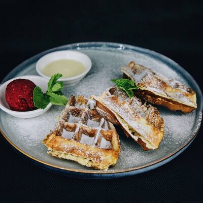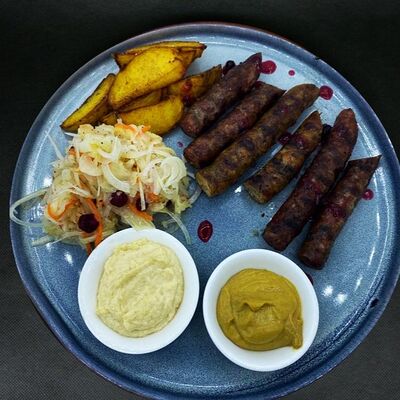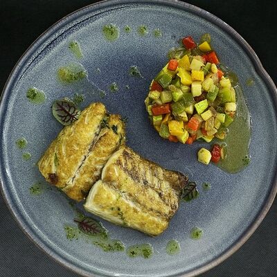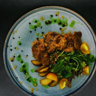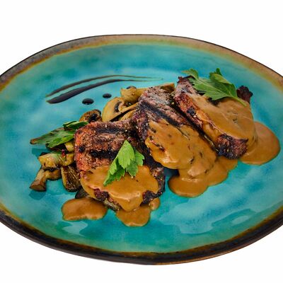Медальоны на грибной подушке из вешенок и шампиньонов под соусом демиглас