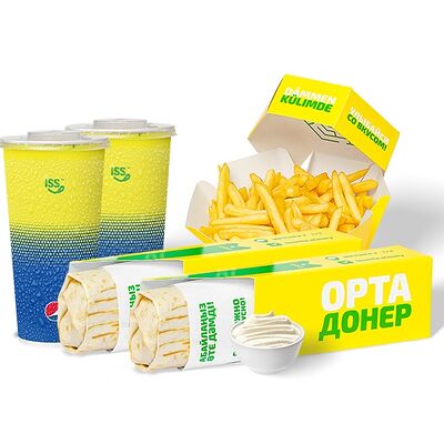 Кіші донер, картофель фри (90 г), чесночный соус, Pepsi (300 мл)