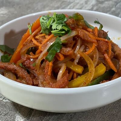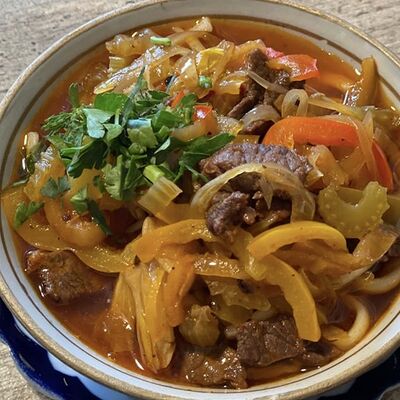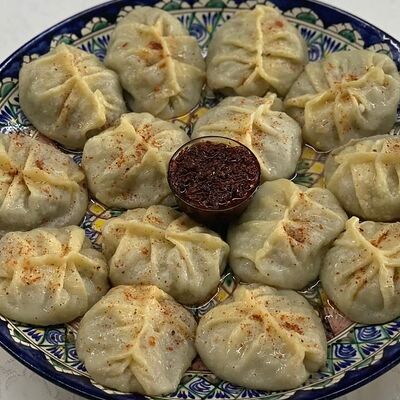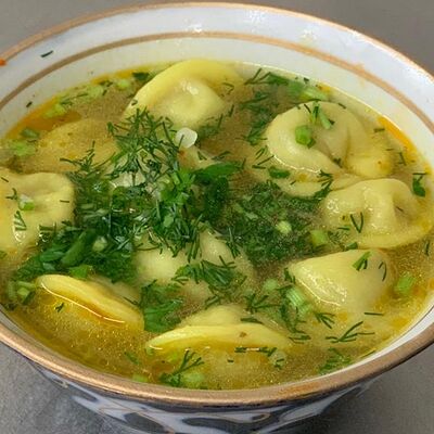 Пшеничное тесто, фарш ягненка, красный бульон, специи, овощи, зелень, томатная паста