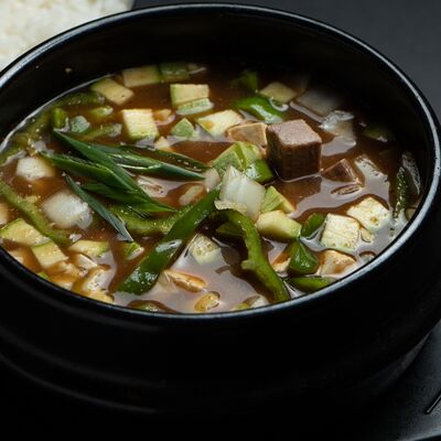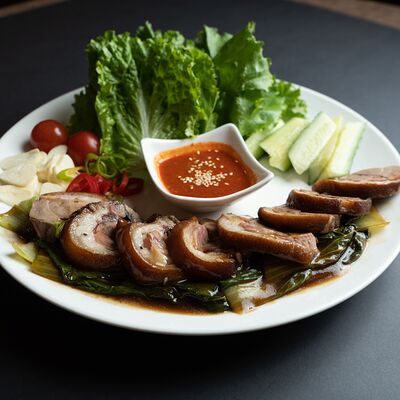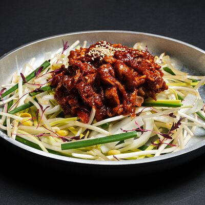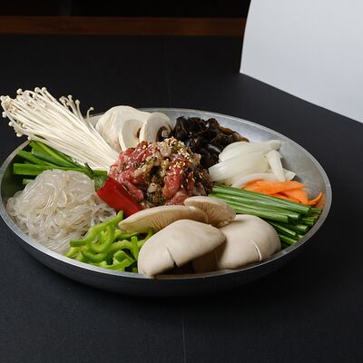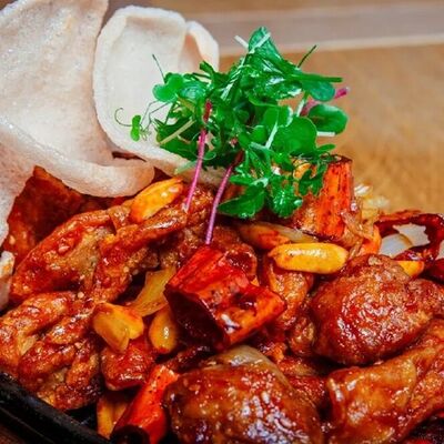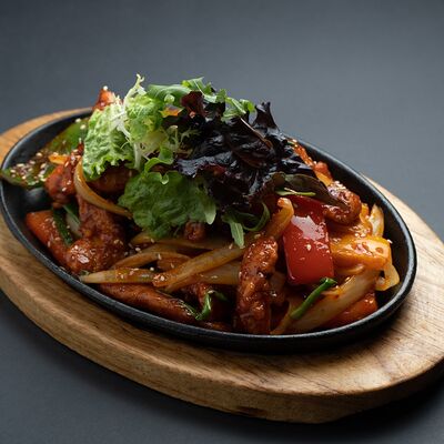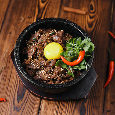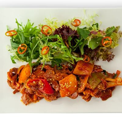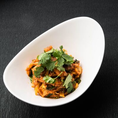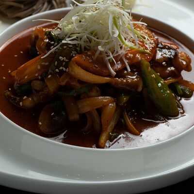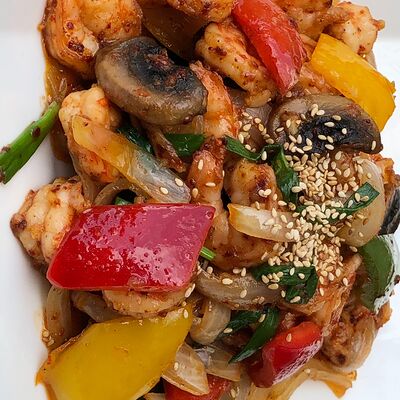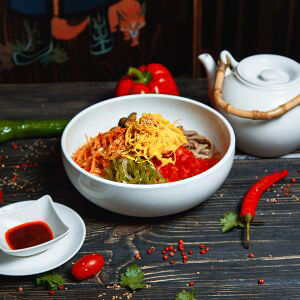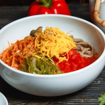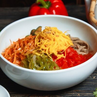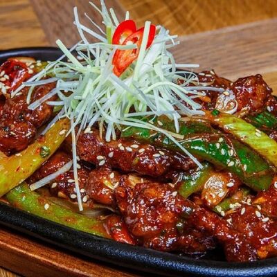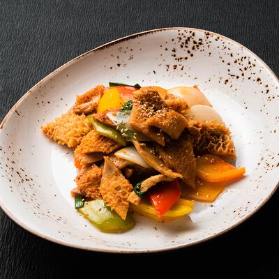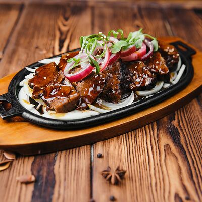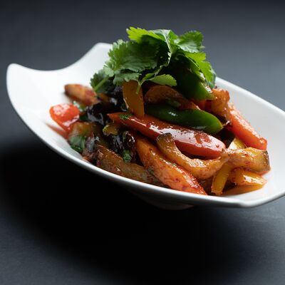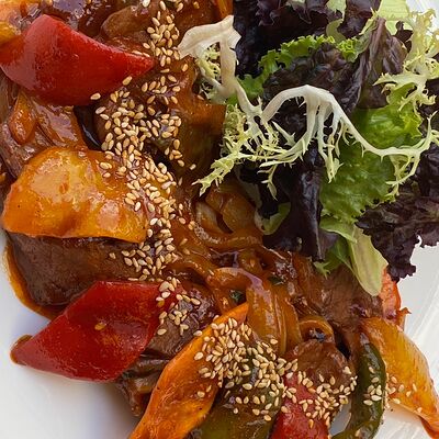Филе говядины, болгарский перец, лук репчатый, сельдерей, дунганский перец