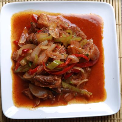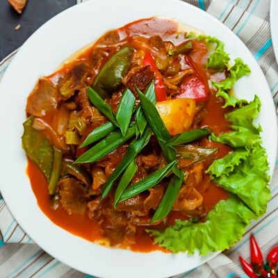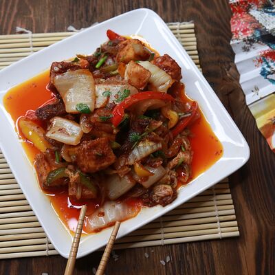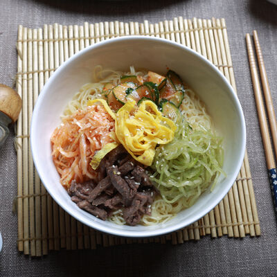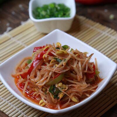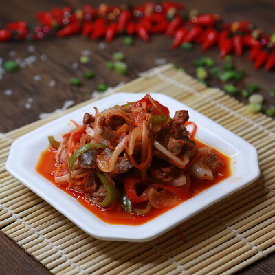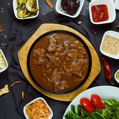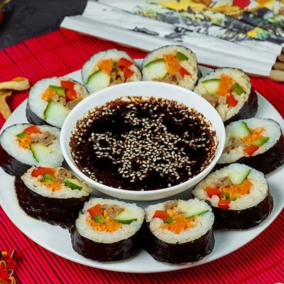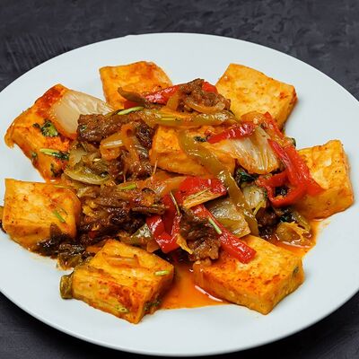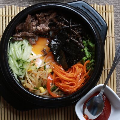 Папоротник, морская капуста, говядина, тофу, проросшие бобы