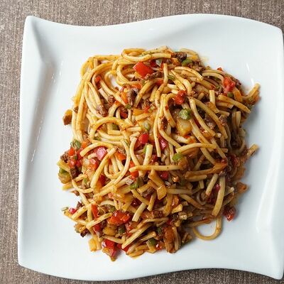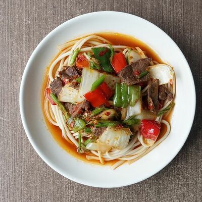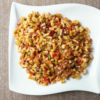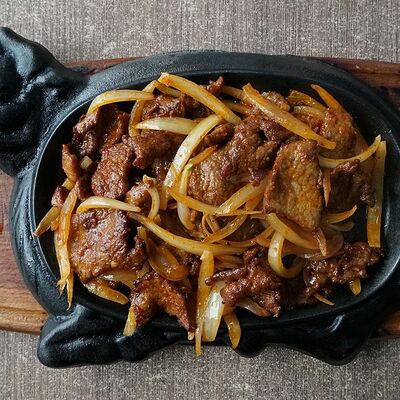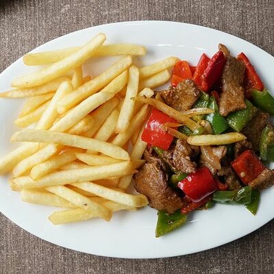 Говядина, картофель фри, перец, лук