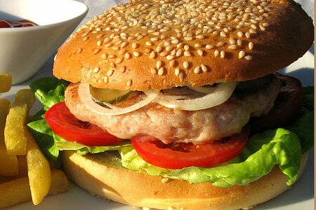 Бургер с куриной котлетой и фри доставка