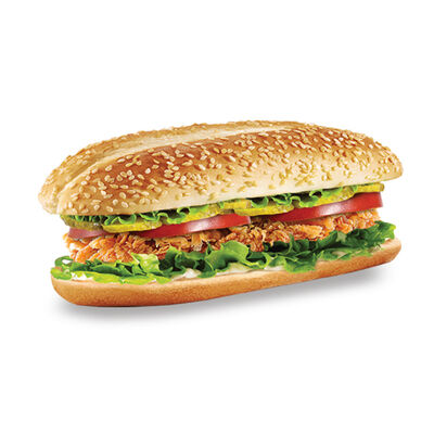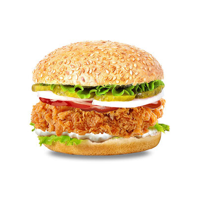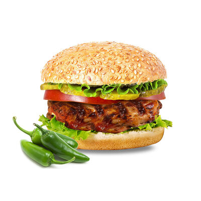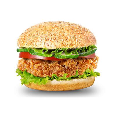 Куриное филе гриль, помидор, огурец, лист салата, майонез, булочка