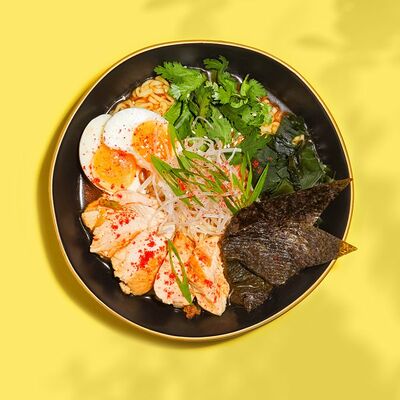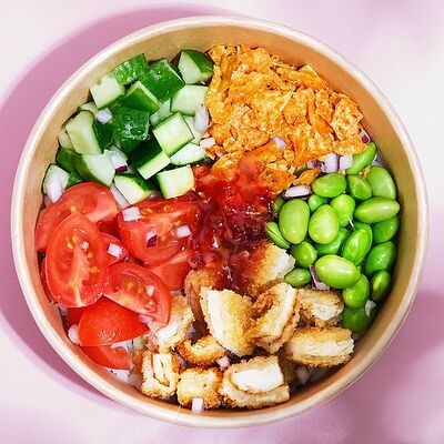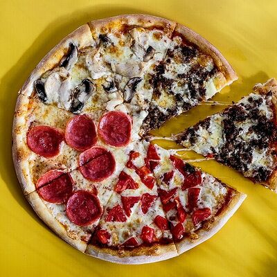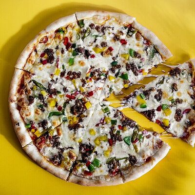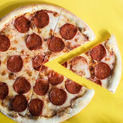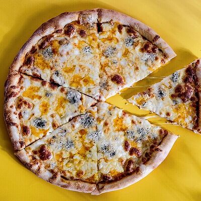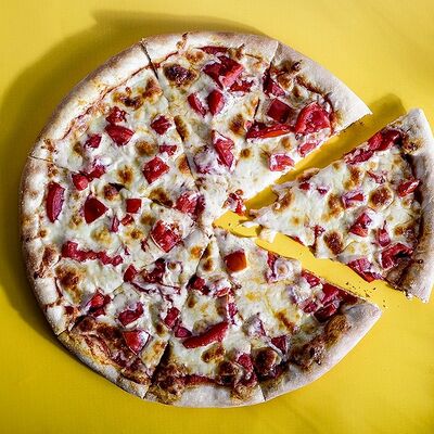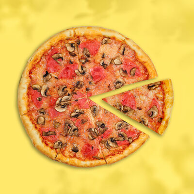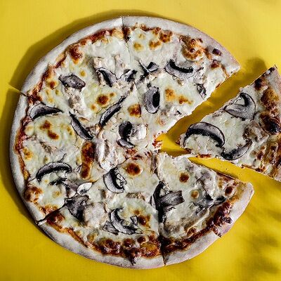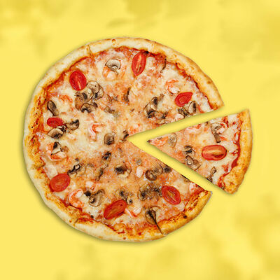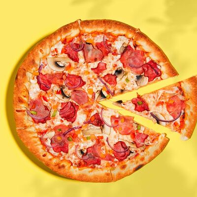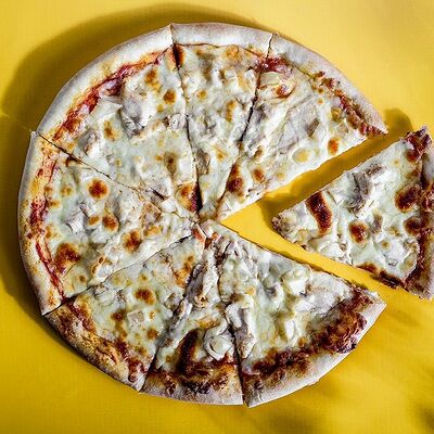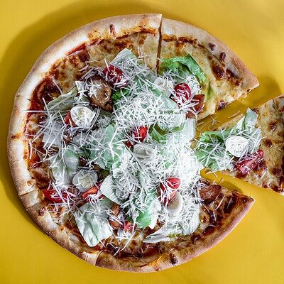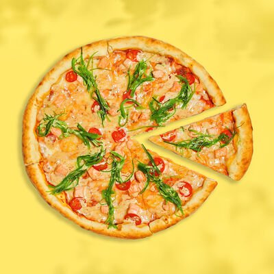 Пицца со свежими листьями салата Айсберг, помидорами черри, перепелиными яйцами и сочным куриным филе для настоящих гурманов. Диаметр: 32 см