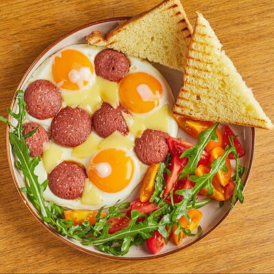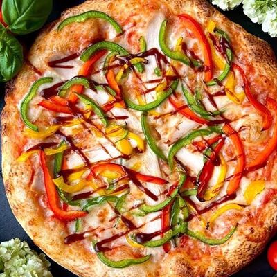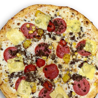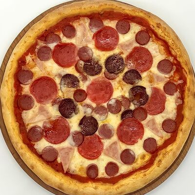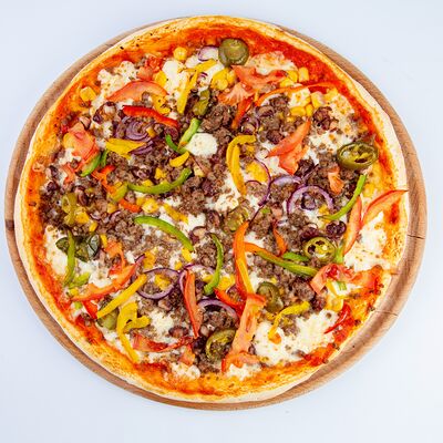 Вырезка говяжья, помидоры, филе куриное, свежие шампиньоны, соленые огурцы, петрушка (33 см)