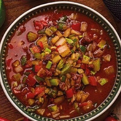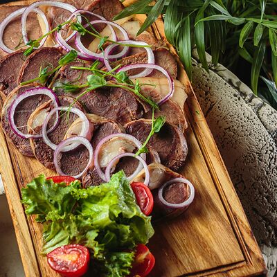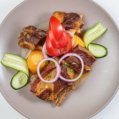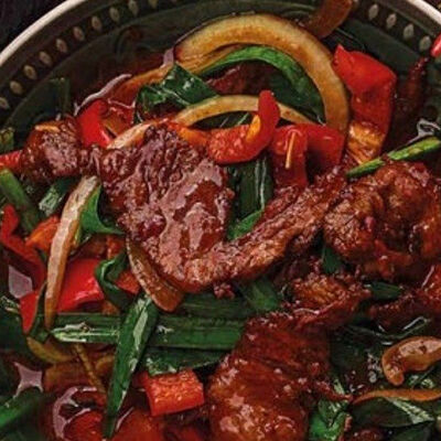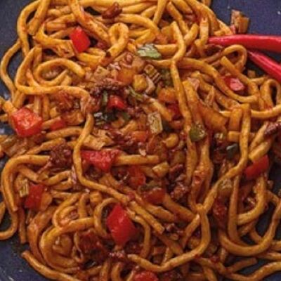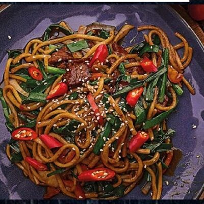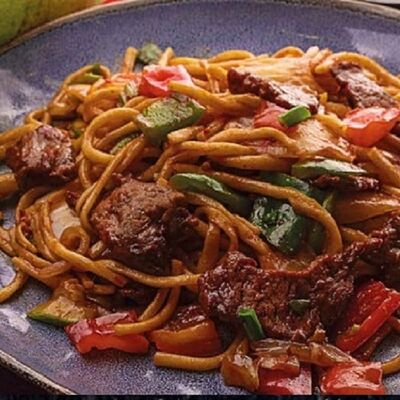 Говядина, джусай, овощи, болгарский перец, лапша