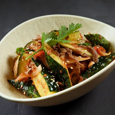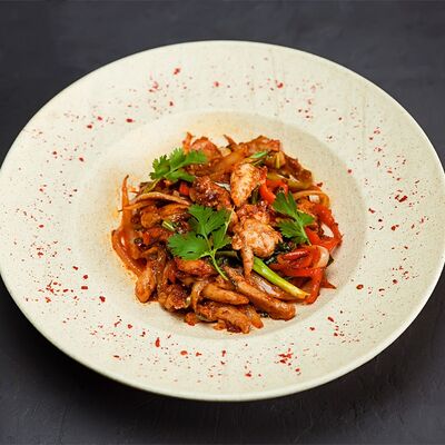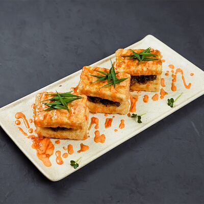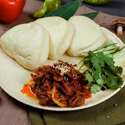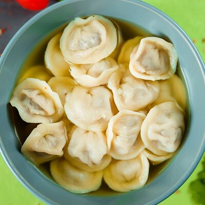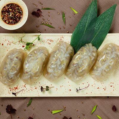 Крахмальное пигоди с мясом говядины, кабачками (цуккини), белокочанной капустой и специями (соль, перец черный) (5 шт)