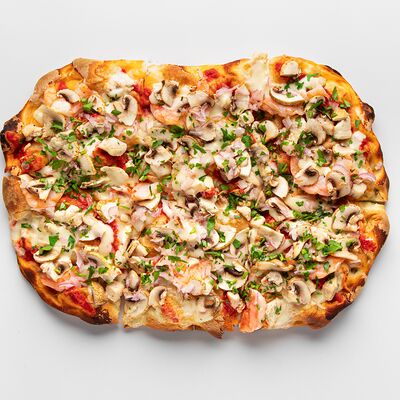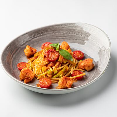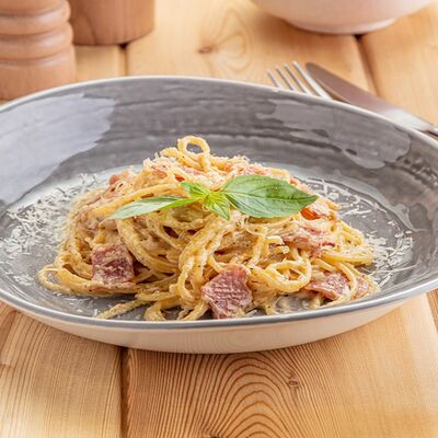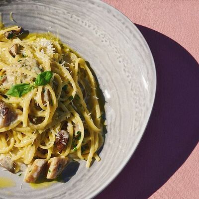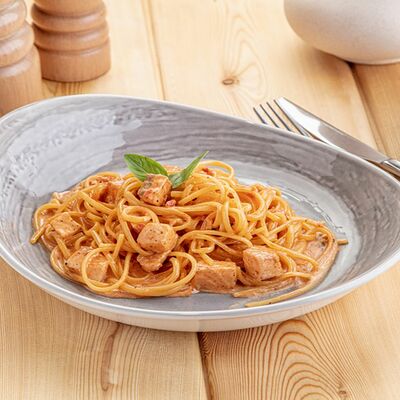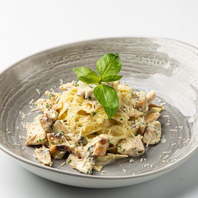 Куриное филе, шампиньоны, сливки 22%, паста феттуччине