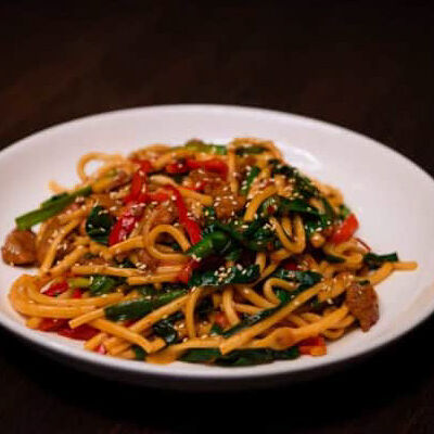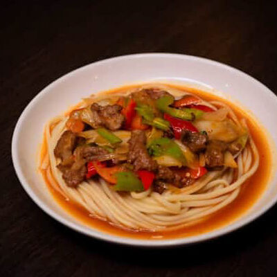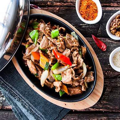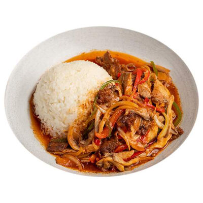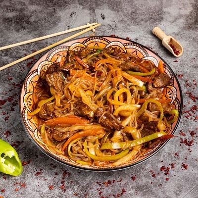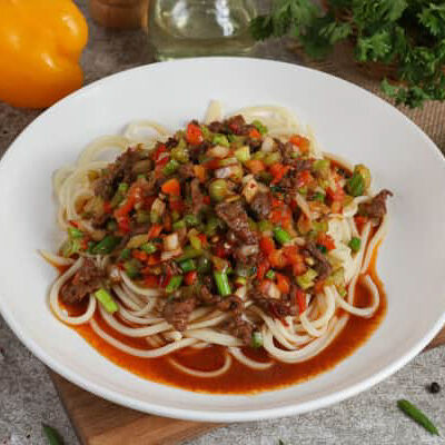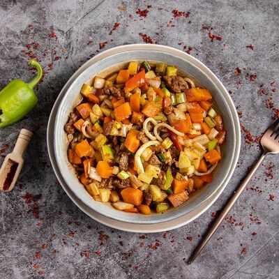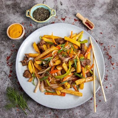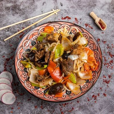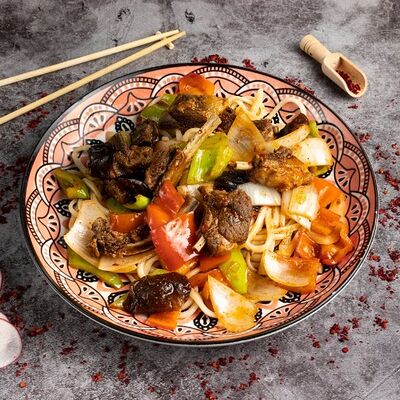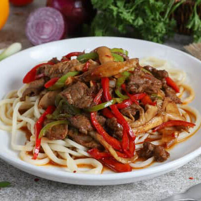 Жареная говядина с перцем и луком
