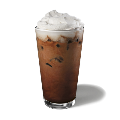 Охлажденный напиток на основе эспрессо и молока с добавлением соуса белого шоколада, украшенный взбитыми сливками. Поддерживая эко-инициативу, для охлажденных напитков мы предлагаем крышку, для которой не нужна трубочка