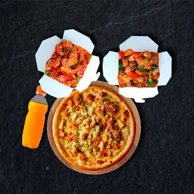 На основе соуса бешамель, начинка из сочных кусочков курицы, ломтиков ананаса, кукурузы. Моцарелла, орегано и укроп удачно завершают необычное сочетание. Находка для любителей поэкспериментировать