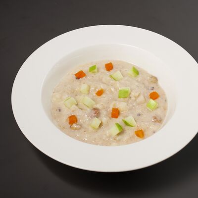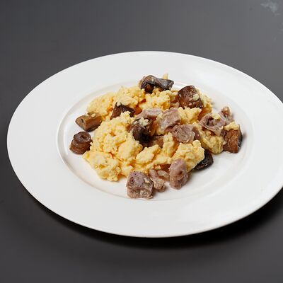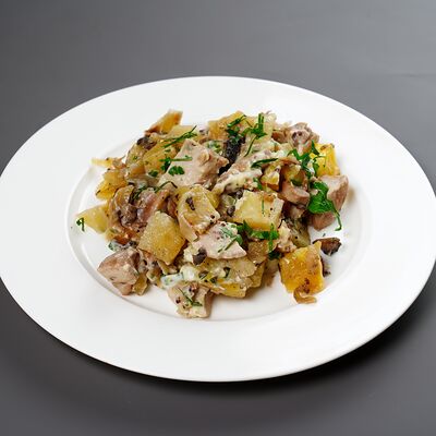 Бефстроганов из говядины: (говядина, лук репчатый, грибы шампиньоны, огурцы соленые, молоко (молоко нормализованное), масло подсолнечное рафинированное, сливки питьевые (сливки нормализованные), сыр полутвердый (молоко нормализованное, соль (содержит антислеживающий агент-ферроцианид калия), уплотнитель хлорид кальция, бактериальная закваска мезофильных и термофильных микроорганизмов, молокосвертывающий фермент микробного происхождения), зелень, мука пшеничная, масло сливочное (сливки пастеризованные), соль. Картофельное пюре: картофель, масло сливочное (сливки пастеризованные), молоко (молоко нормализованное), соль. Продукт содержит аллергены: молоко, глютен. Может содержать в составе следы: арахиса, горчицы, кунжута, моллюсков, рыбы, ракообразных, сои, сельдерея, яичных продуктов