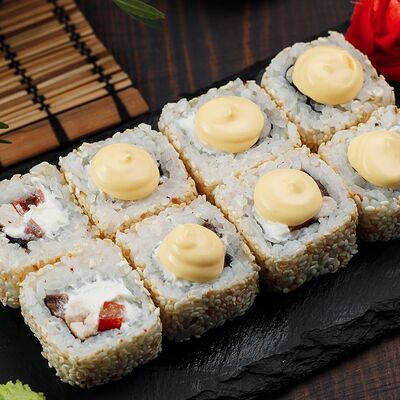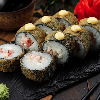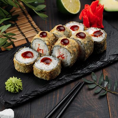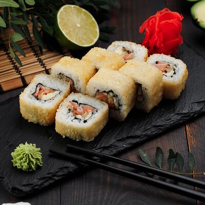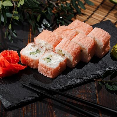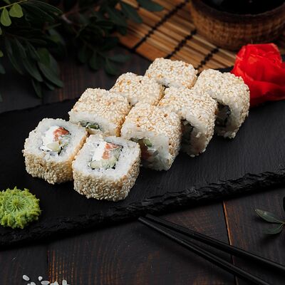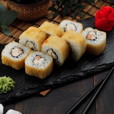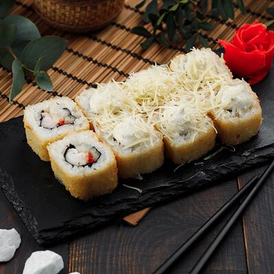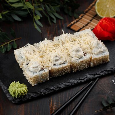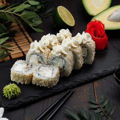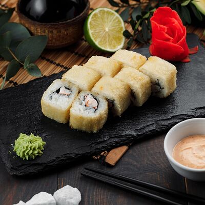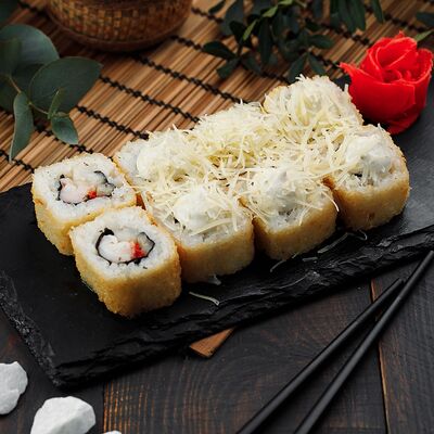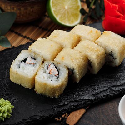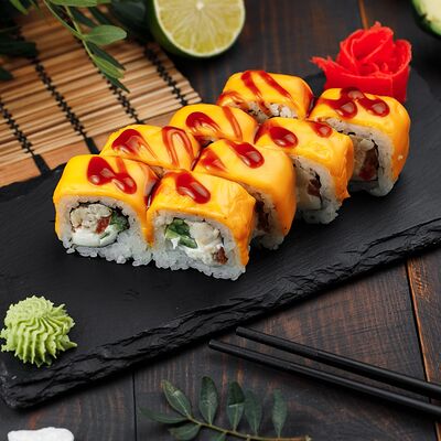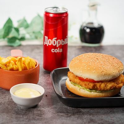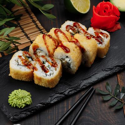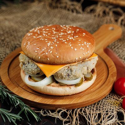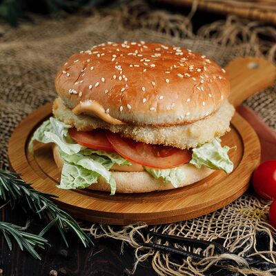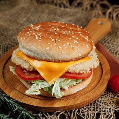 Котлета куриная в темпуре, томат, сыр Hochland, огурец маринованный, японский соус