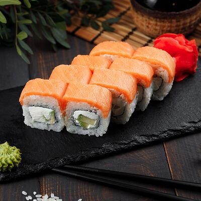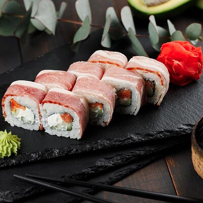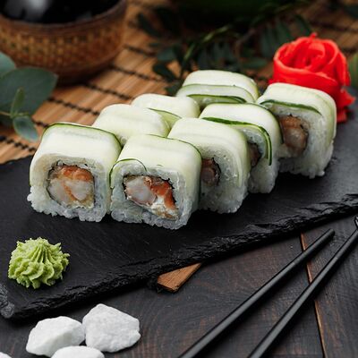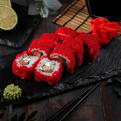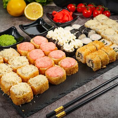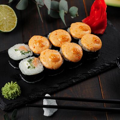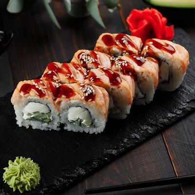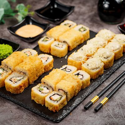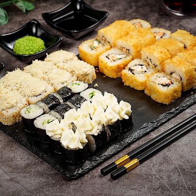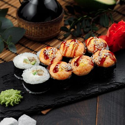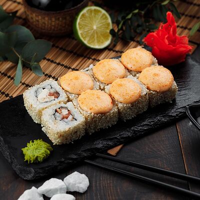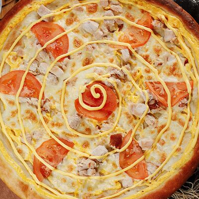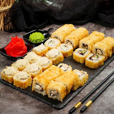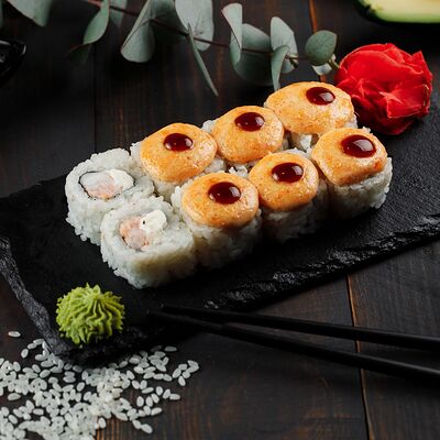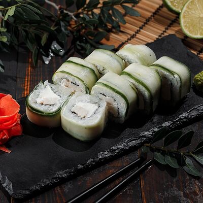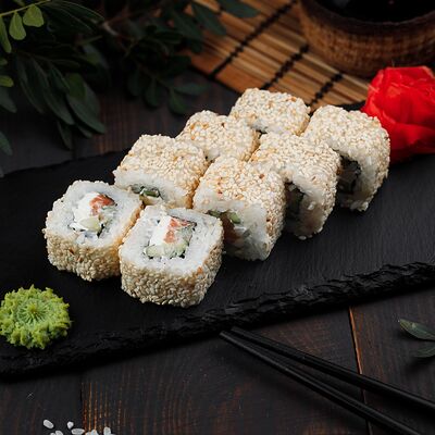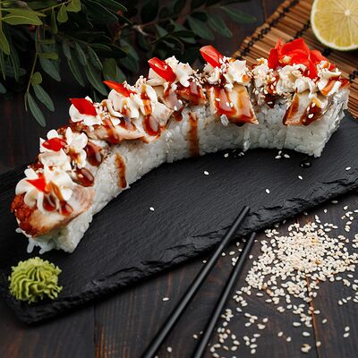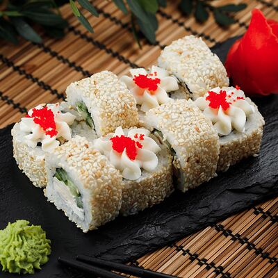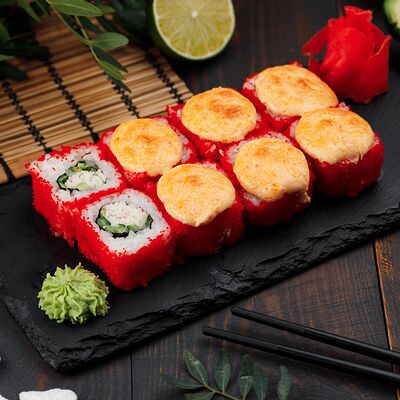 Котлета куриная в темпуре, томат, сыр Hochland, огурец маринованный, японский соус