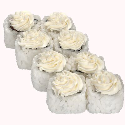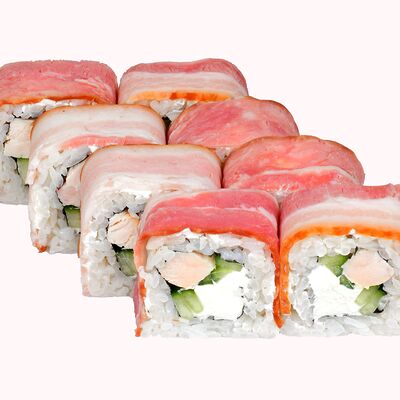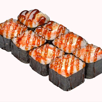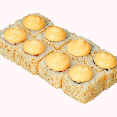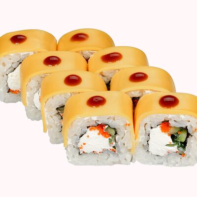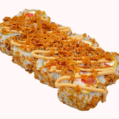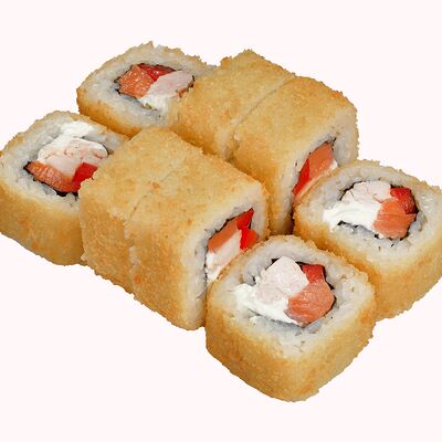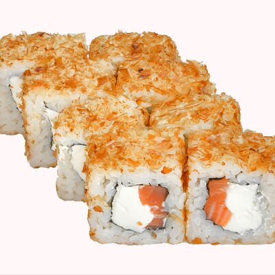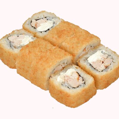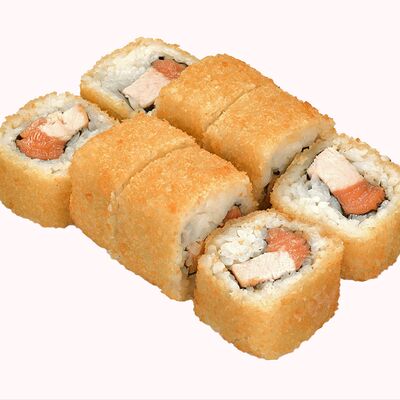 Лосось, курица, болгарский перец, сыр сливочный, темпура, рис