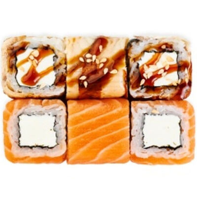 Нори, рис, сыр творожный, авокадо, лосось