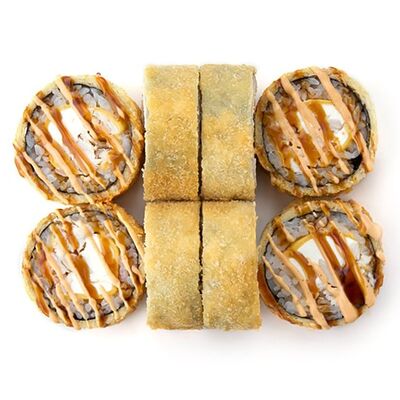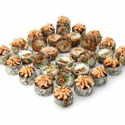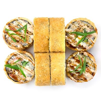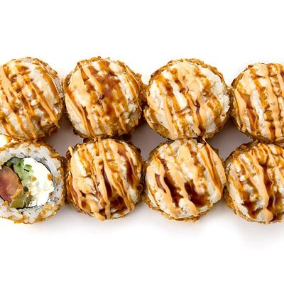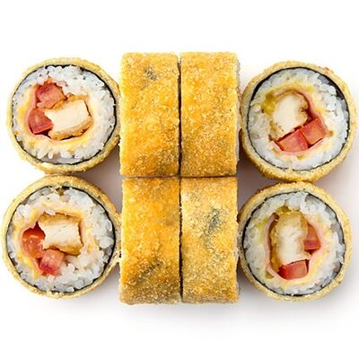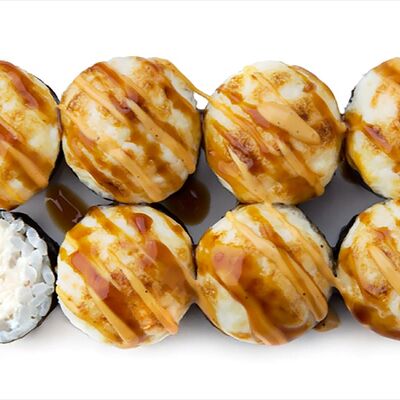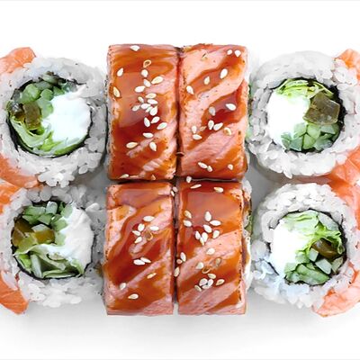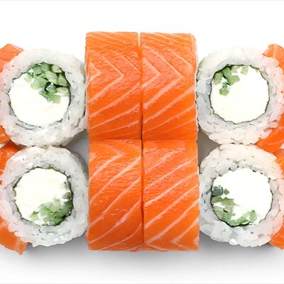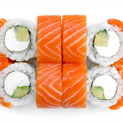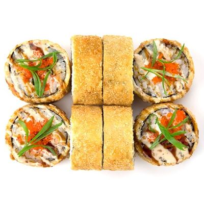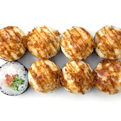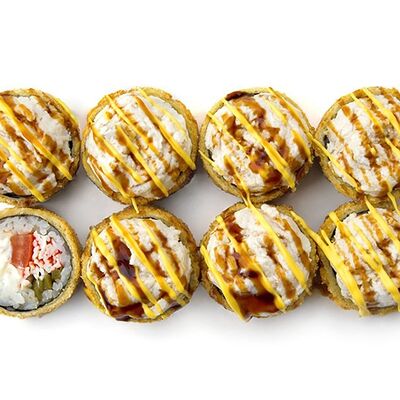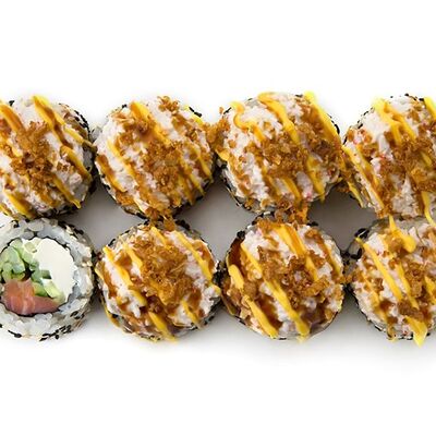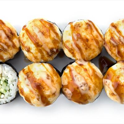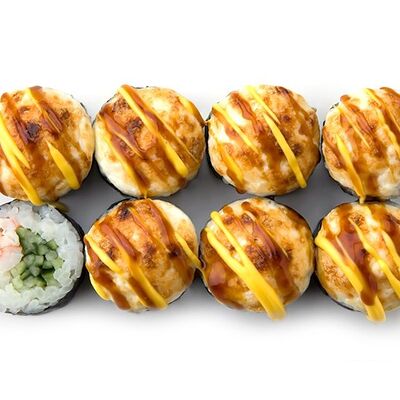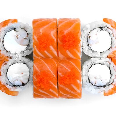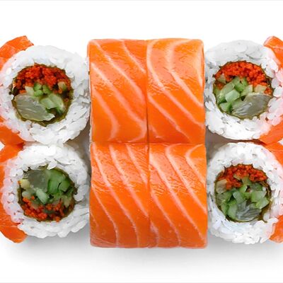 Рис, нори, майонез, авокадо, креветки, огурец, масаго (на данный момент авокадо жёсткий)