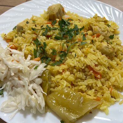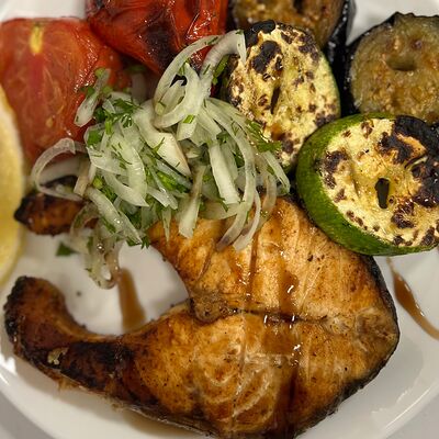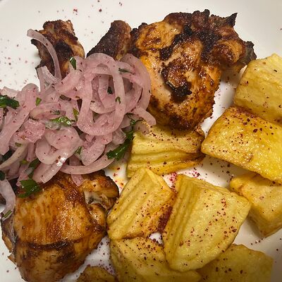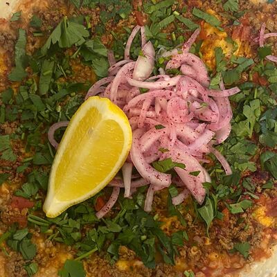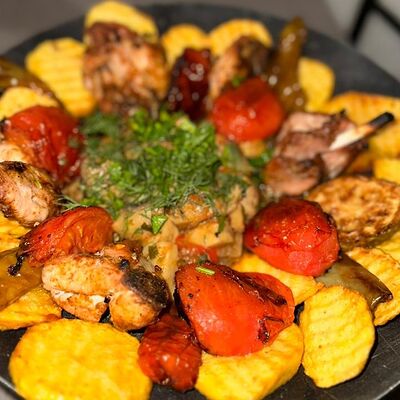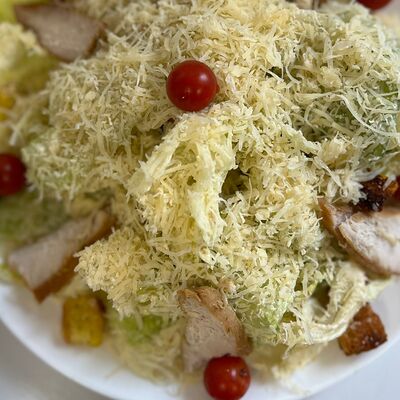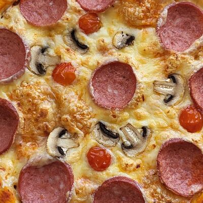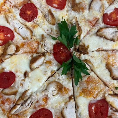 Пицца с куриной грудкой, томаты черри, сыром пармезан и фирменным соусом
