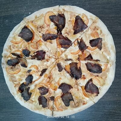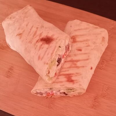 Копченая говядина, огурцы, помидоры, лук, капуста, лаваш, фирменный соус