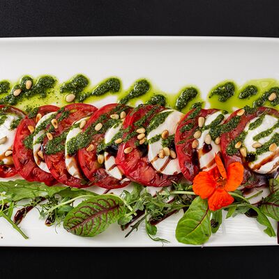 Салат Айсберг, креветки тигровые, помидоры черри, сыр пармезан, соус Цезарь