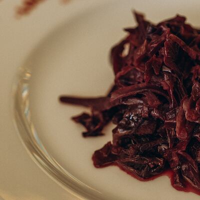 Горчица зернистая, молодая красная капуста