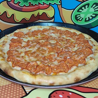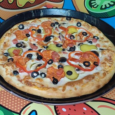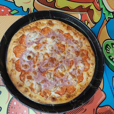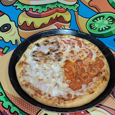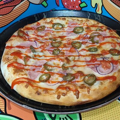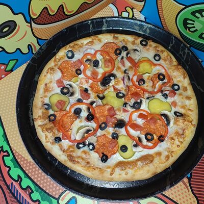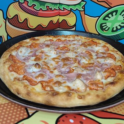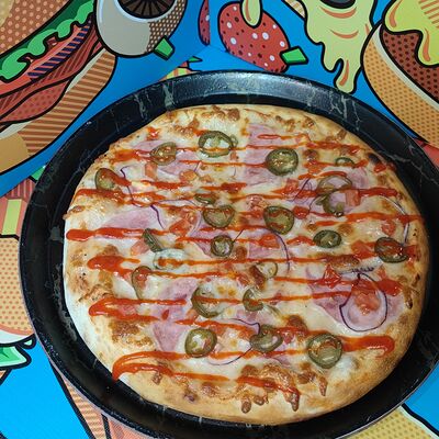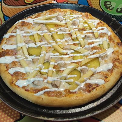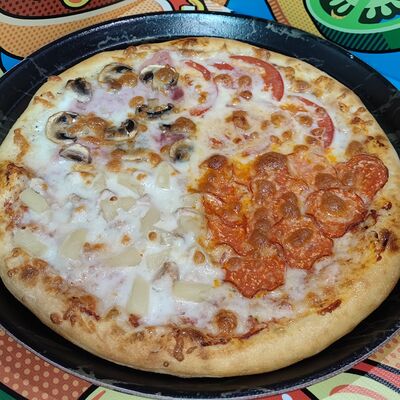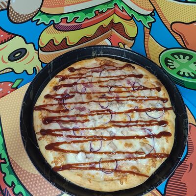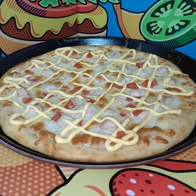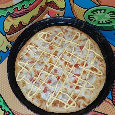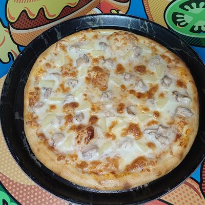 Сыр моцарелла, курица, ананас, соус красный (25 см)