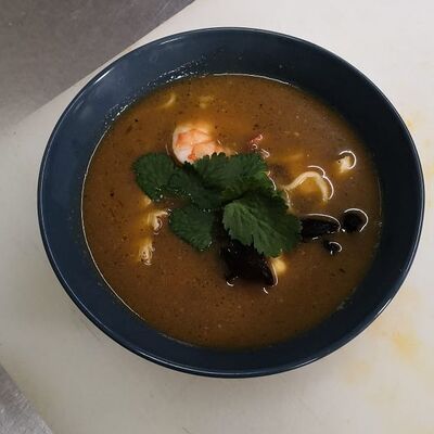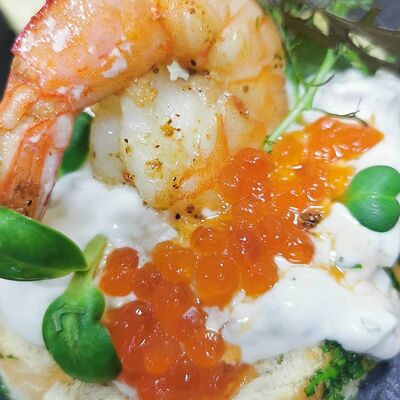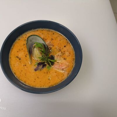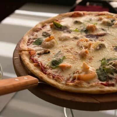 Красный соус, сыр, лосось, креветка, мидии (32 см)