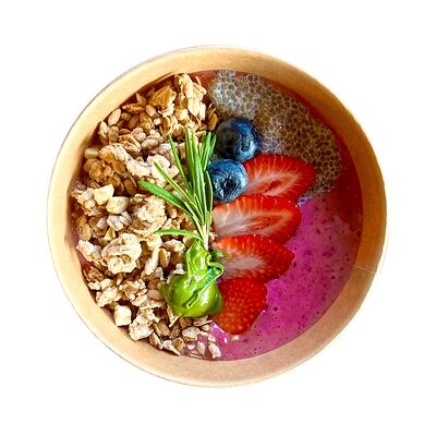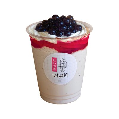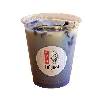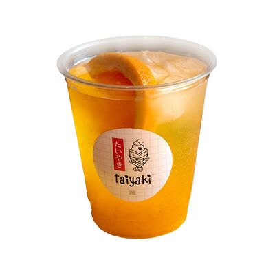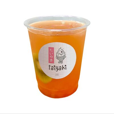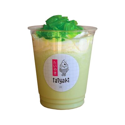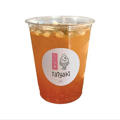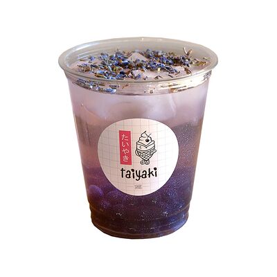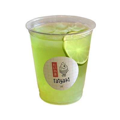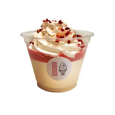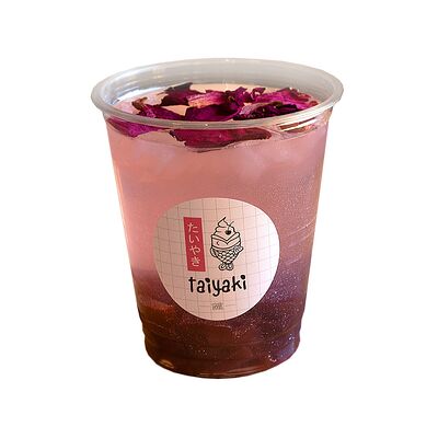 Газированная вода, лёд, сироп, кокосово-винoградное желе, украшен лепестками роз. Собственного приготовления