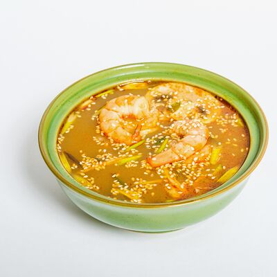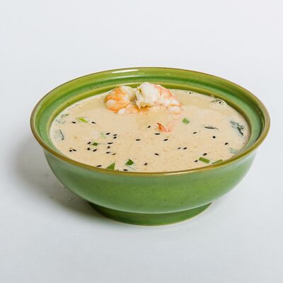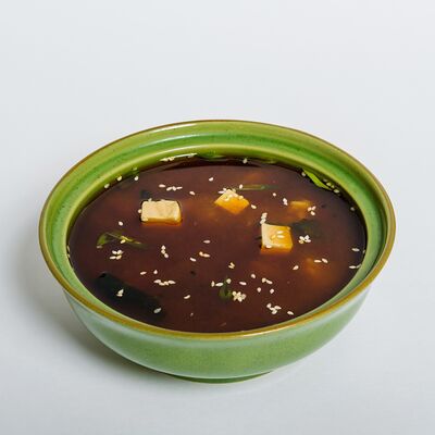 Бонито бульон, мисо-паста, вакаме, сыр тофу, зеленый лук, кунжут