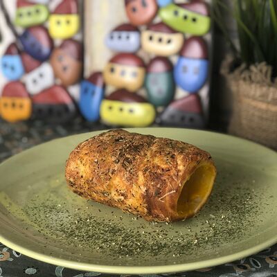 Тесто сдобно-дрожжевое, сахар, корица, дробленый арахис