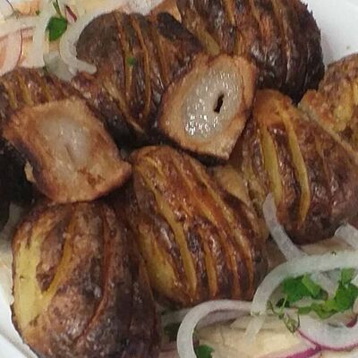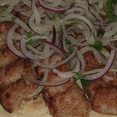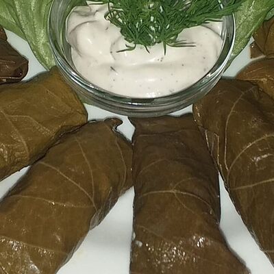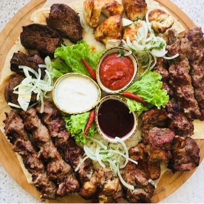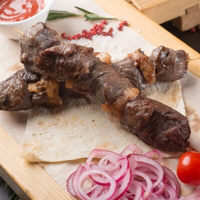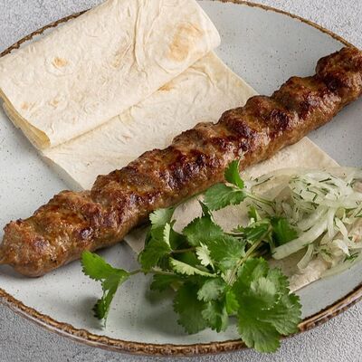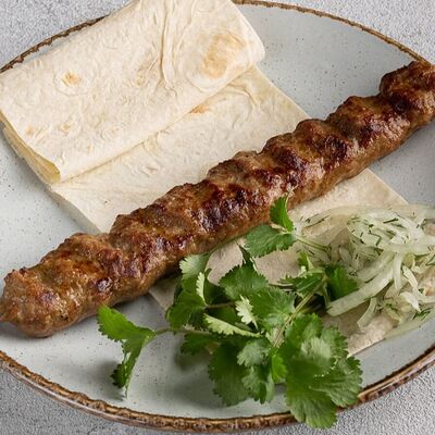 Фарш говяжий, тесто, специи, соус мацони с чесноком