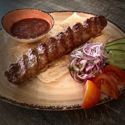 Баранина, лук, зелень, лаваш
