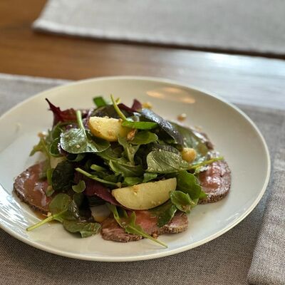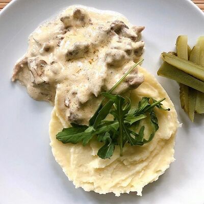 Бефстроганов из телятины. Подаётся с картофельным пюре