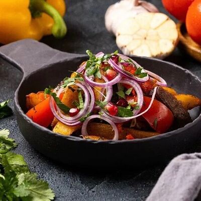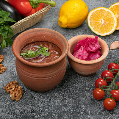 Баклажан, грецкие орехи, гранат, грузинские специи, соль