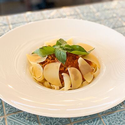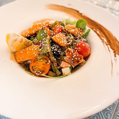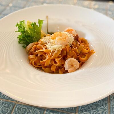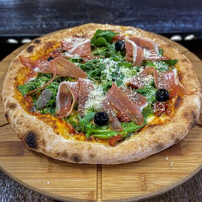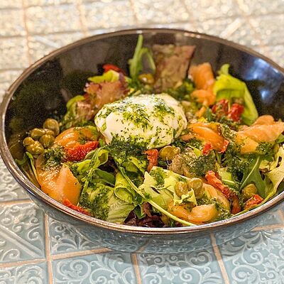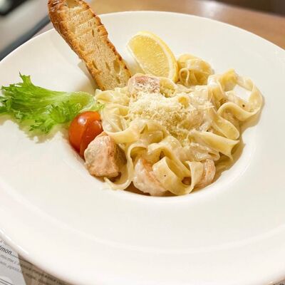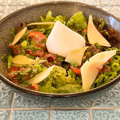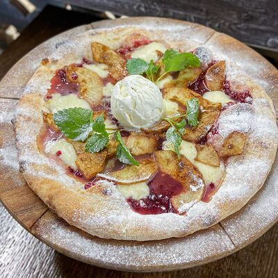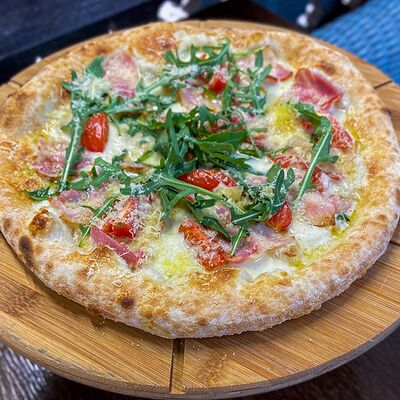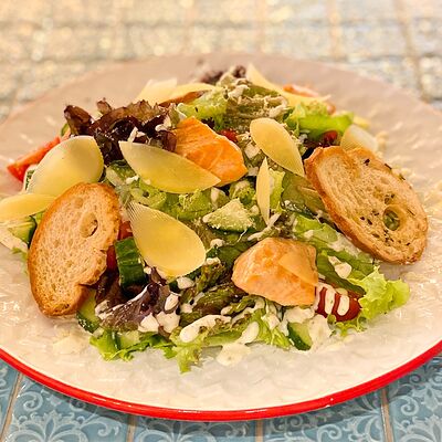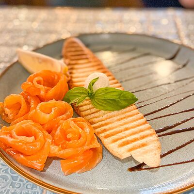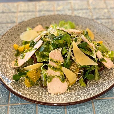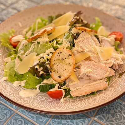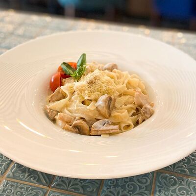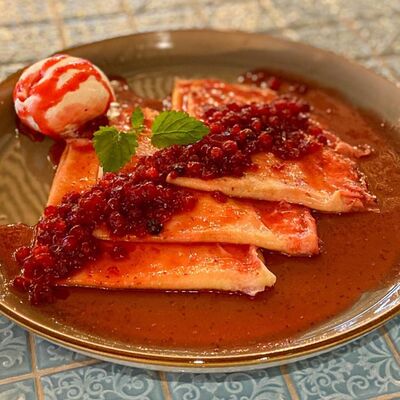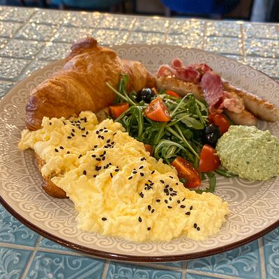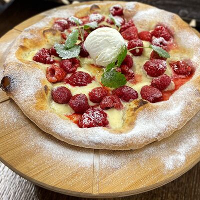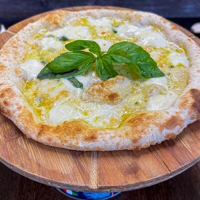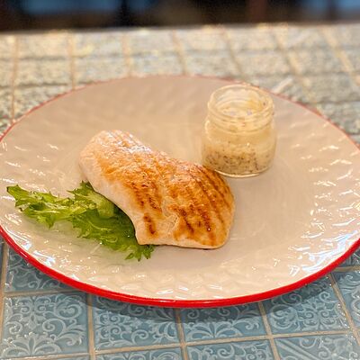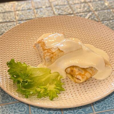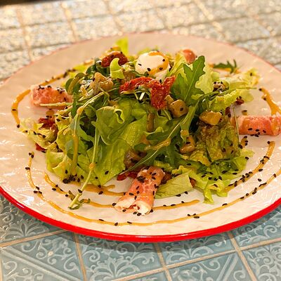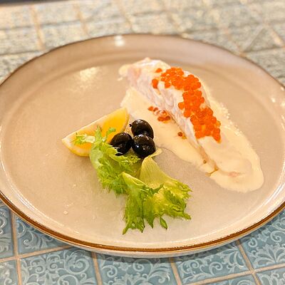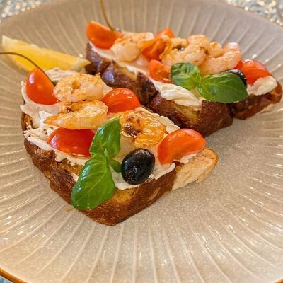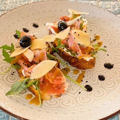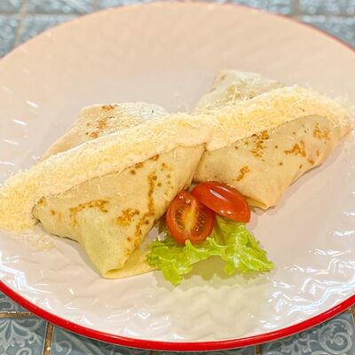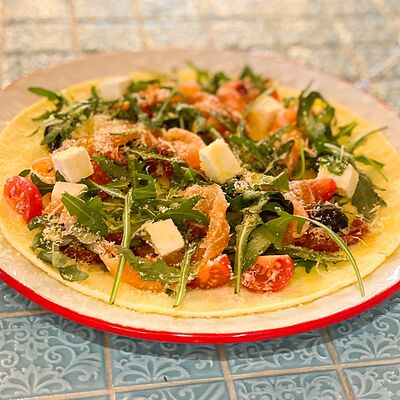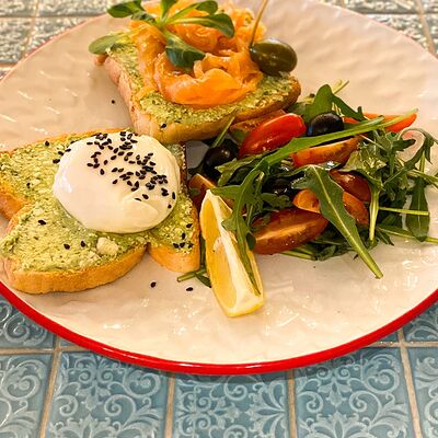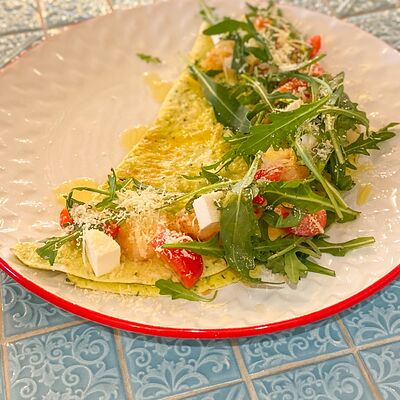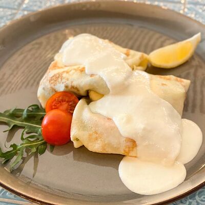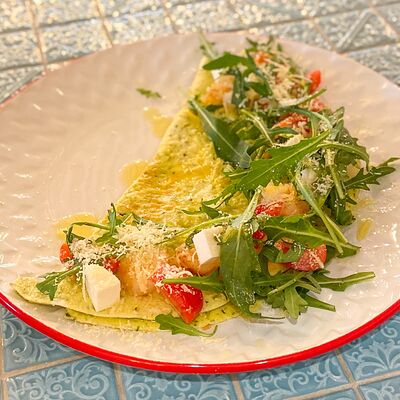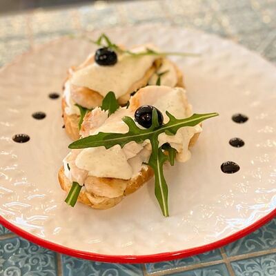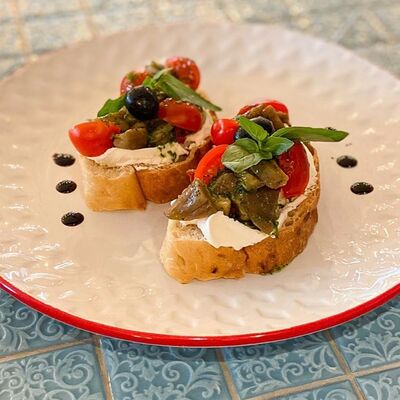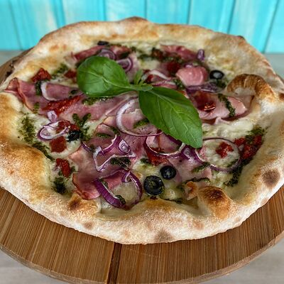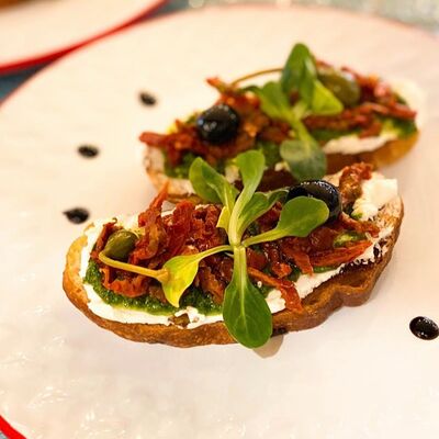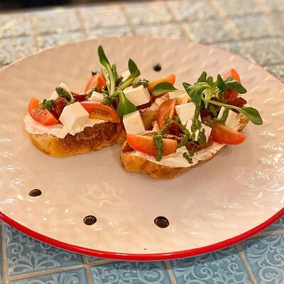 С сыром фета, маслинами, сливочным сыром, соусом песто