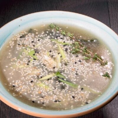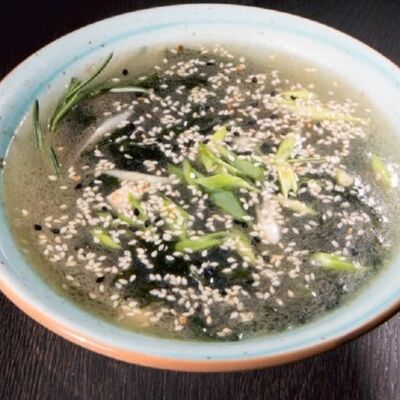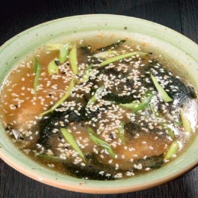 Мисо-бульон, водоросли вакаме, зелёный лук, тофу