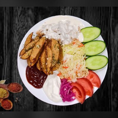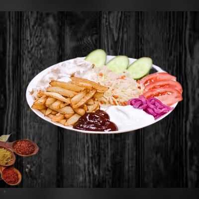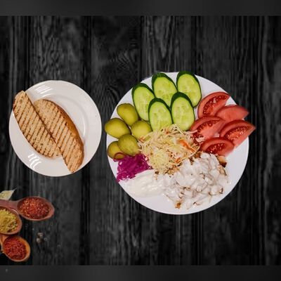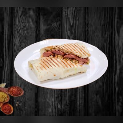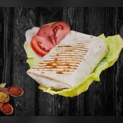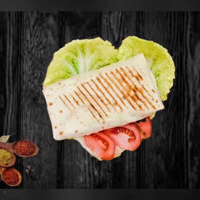 Лаваш ручной работы, пекинская капуста, помидоры, свежий огурец, лук репчатый, фирменный соус на основе кефира