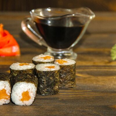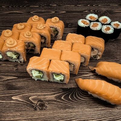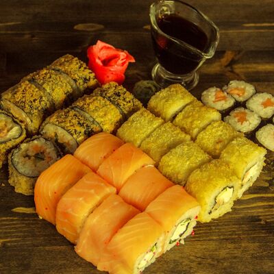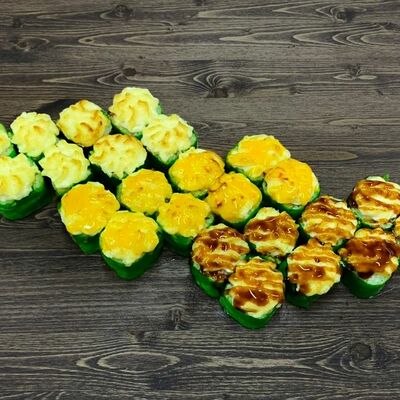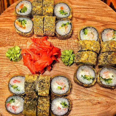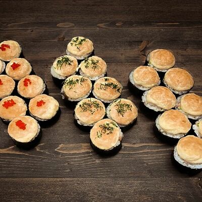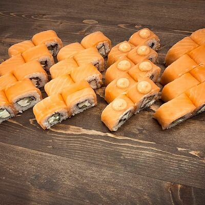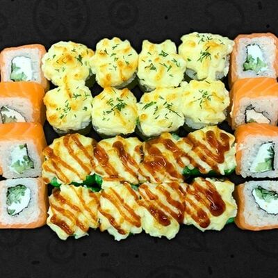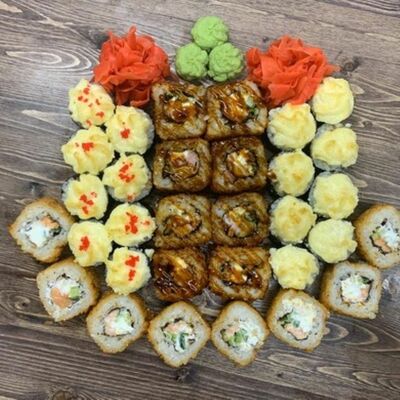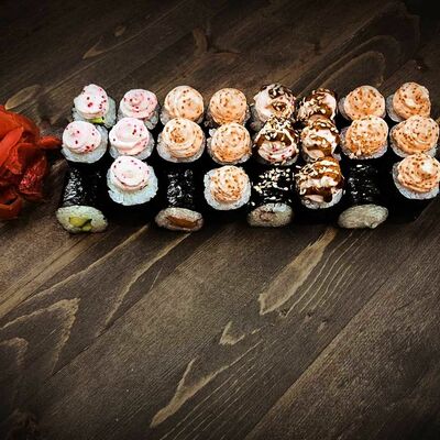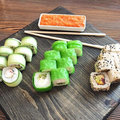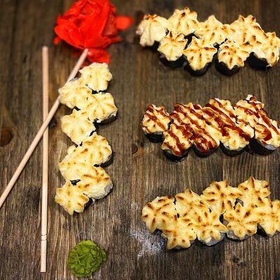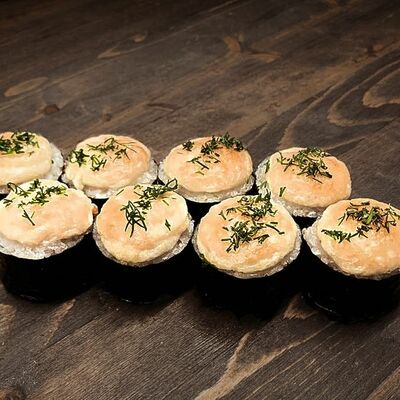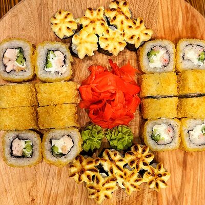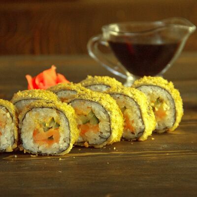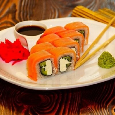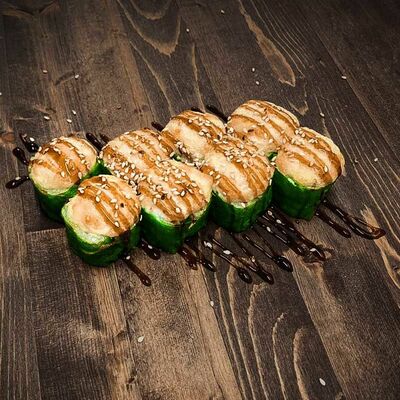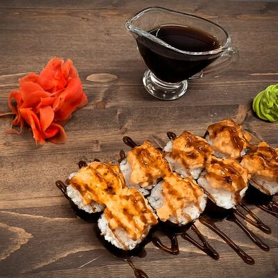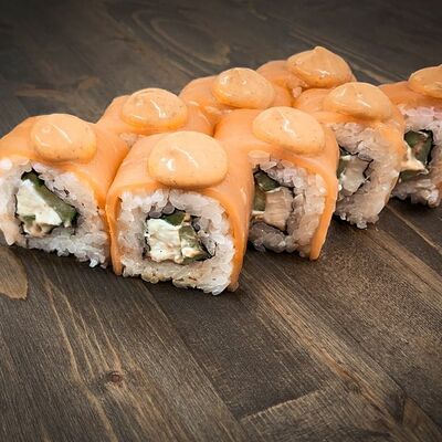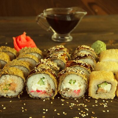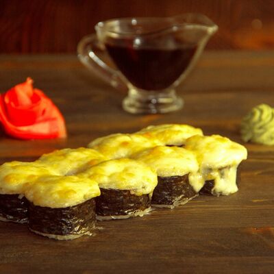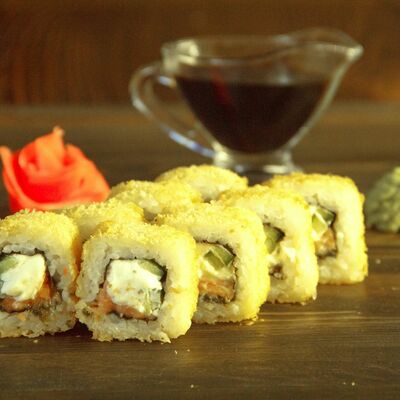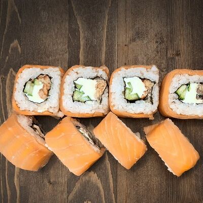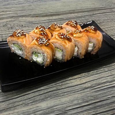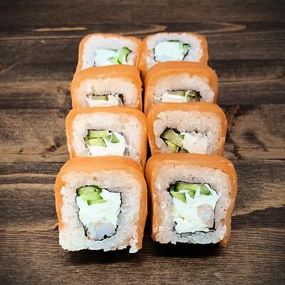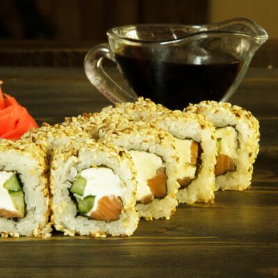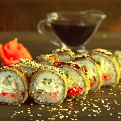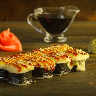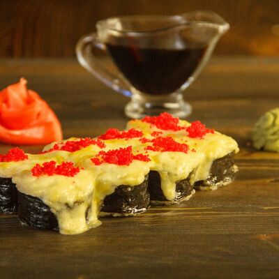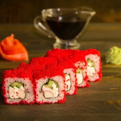 Нори, рис, угорь, огурец, сливочный сыр, икра масаго