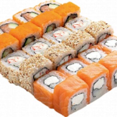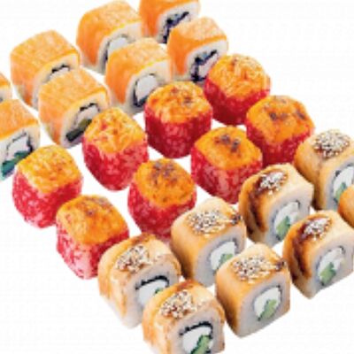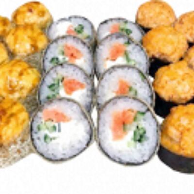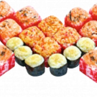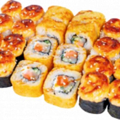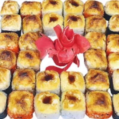 Запеченный нежный с курицей, Запеченный сакура, Запеченный с крабом, Запеченный бонито с лососем (32 шт.)