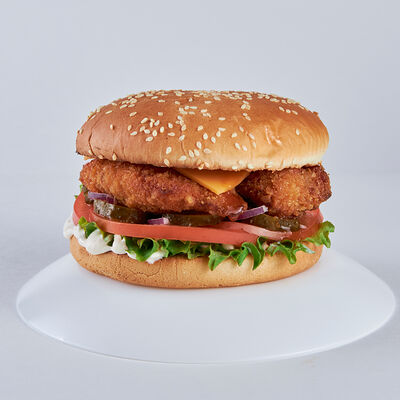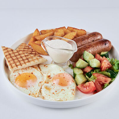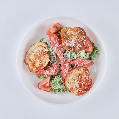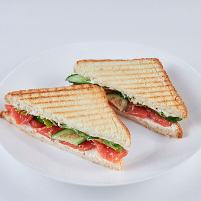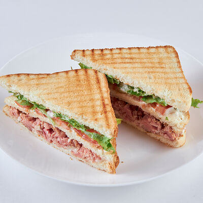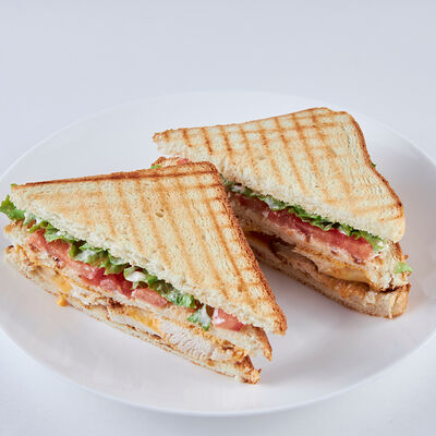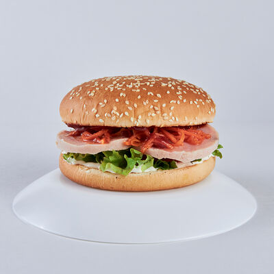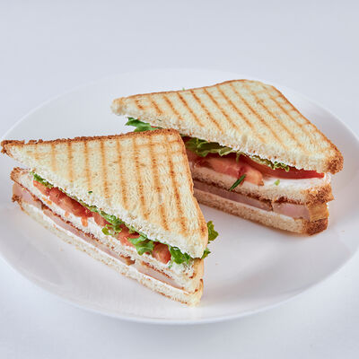 Ветчина, сыр чеддер, хлеб Харрис, помидоры, лист салата, соус белый