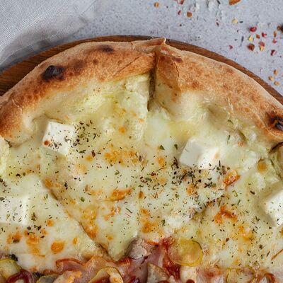 Пармезан, моцарелла, гауда, фета и сулугуни с оливками (30 см)
