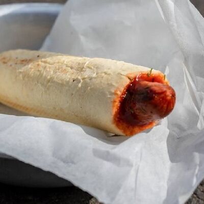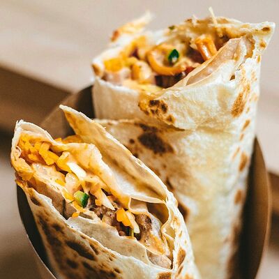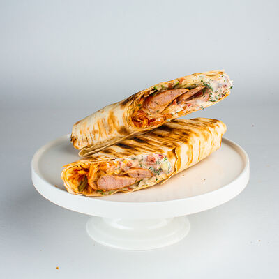 Лаваш тонкий, капуста пекинская, огурец, помидор, зелень, лук репчатый, филе куриное, соус Карри
