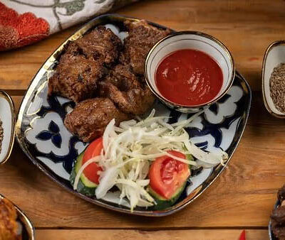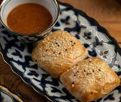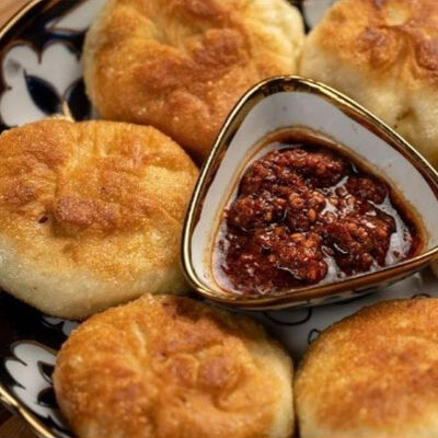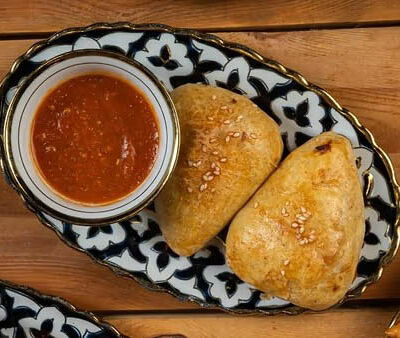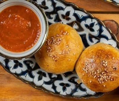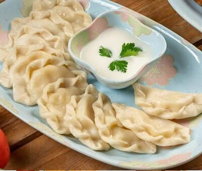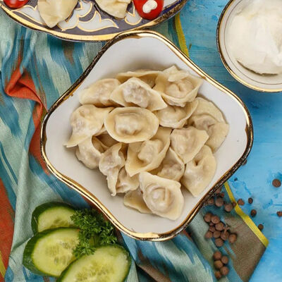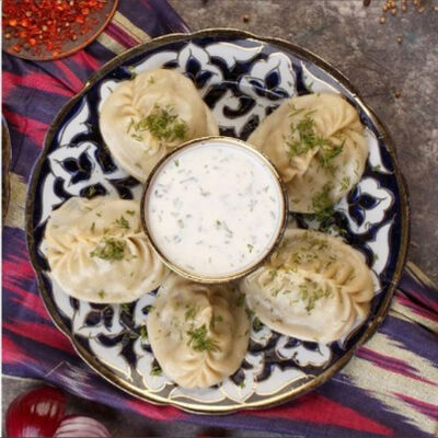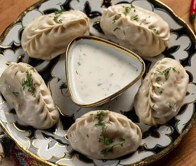 Манты из дрожжевого теста с говядиной и курдюком. Подаем с кисло-острым соусом