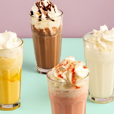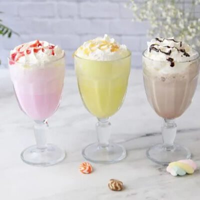 Нежное и освежающее сочетание клубничного мороженного и молока, украшается воздушными взбитыми сливками