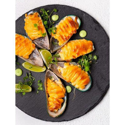 Мидии, запеченные со специальным соусом с добавлением сыра (6 шт.)