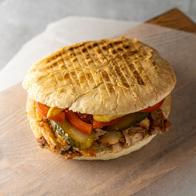 Булочка, говядина, овощи, соус