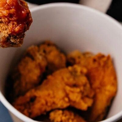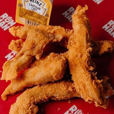 Крылья (6 шт.), стрипсы (6 шт.), картофель фри (2 шт.)