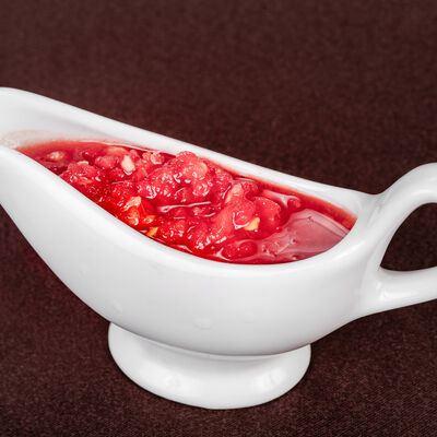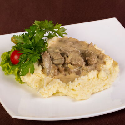С картофельным пюре и клюквенным соусом