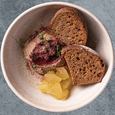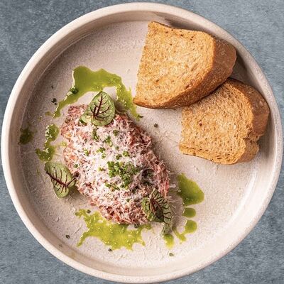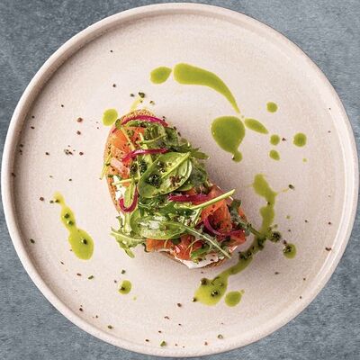 Брускетта с маринованной форелью, сливочным муссом и авокадо доставка